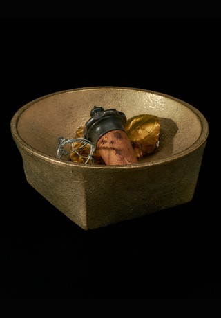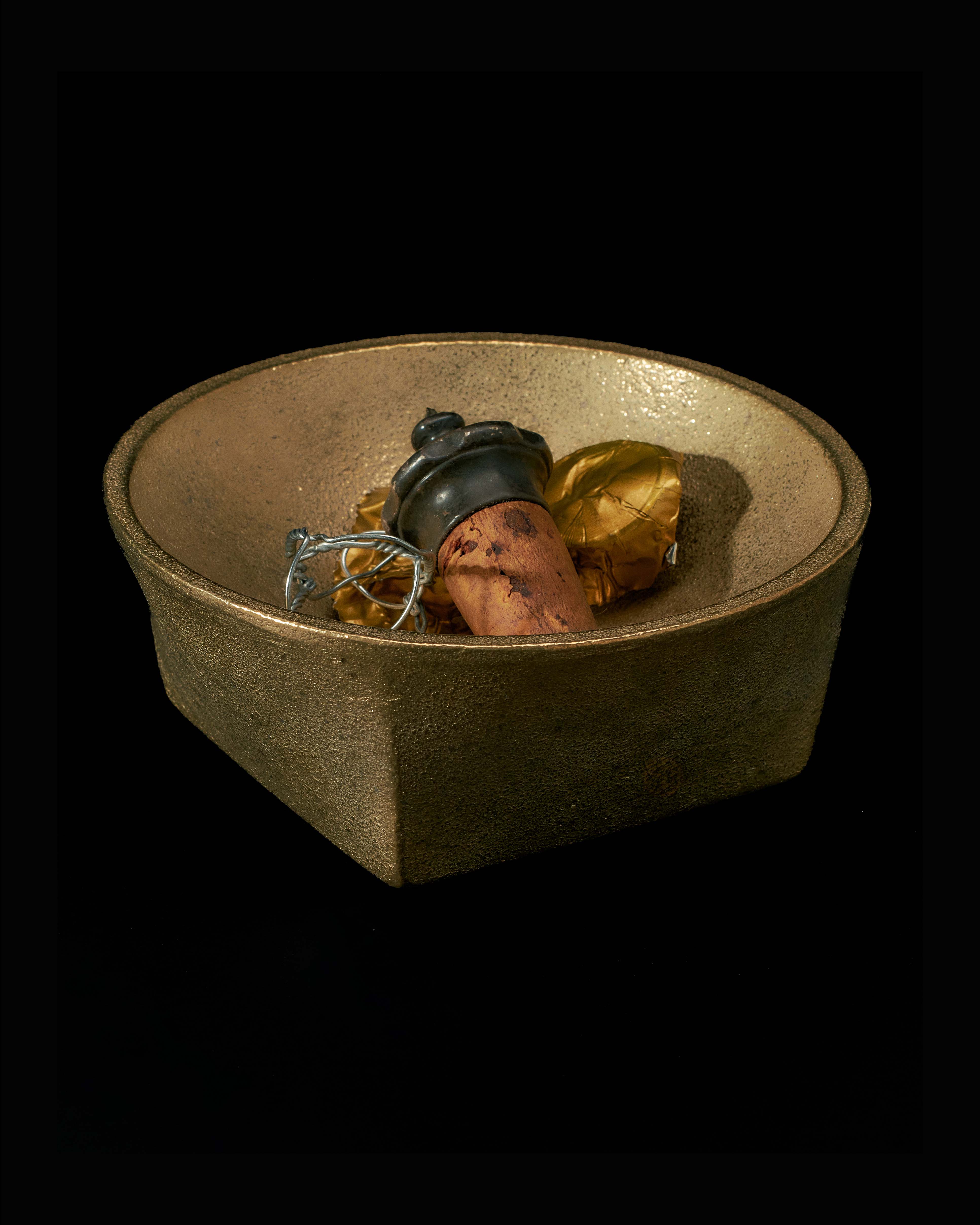 Made in collaboration with SHHORN, this solid brass bowl is weighted with infinite utility. Intended to hold the corks, foils and muselets of your opened wine and champagne, it creates a kind of portrait of your dinner party. And indeed this bowl's robust composition can carry much more; your keys, gems or secrets. With a square base that curves into a spherical opening, it's made with sand-cast brass and retains a surface texture that tells the story of its own making.